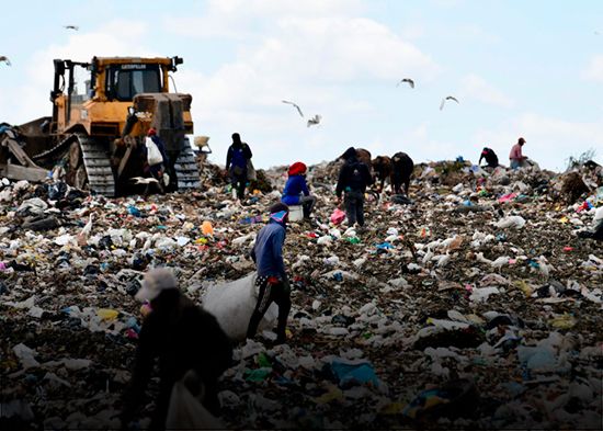 Otros usan las manos desnudas. Cuando los desechos caen, todos se lanzan al mismo tiempo, como avispas en un panal. Buscan plástico, metal, cualquier cosa que pueda convertirse en dinero.