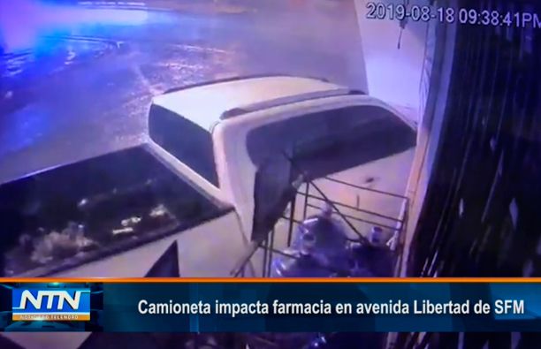 Camioneta impacta farmacia en avenida Libertad de SFM