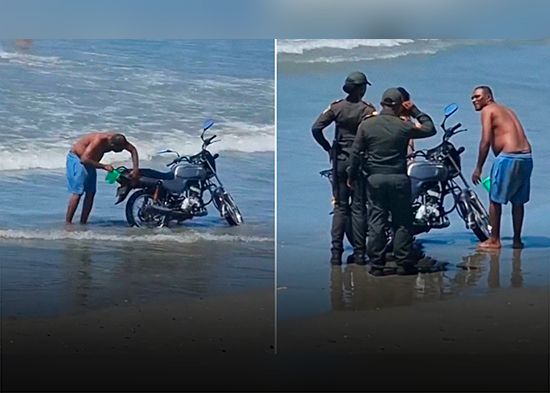Un hombre fue captado lavando su motocicleta con agua de mar en una playa de Cartagena (Colombia), en una escena que rápidamente se volvió viral. En el video, el sujeto limpia con total tranquilidad mientras un testigo, a la distancia, se burla y le advierte sobre los efectos de la sal. Minutos después, varios policías se acercan al lugar, dando un giro inesperado a un momento que muchos ya califican como insólito.
