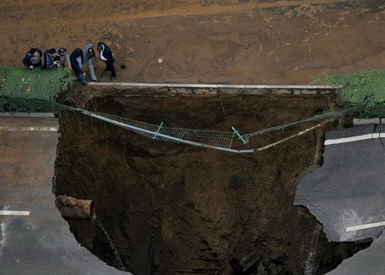 VIDEO: Un gigantesco sumidero se abre en un aparcamiento en China y se 'traga' 21 vehículos