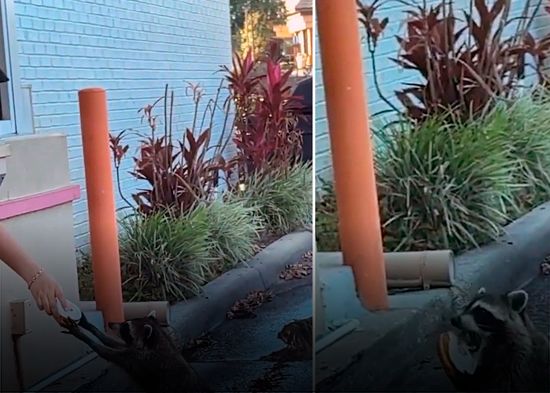 Un mapache fue filmado mientras esperaba pacientemente ser 'atendido' por un empleado de la popular cadena Dunkin' Donuts. El animal se ubicó frente a la ventanilla para coches del local y al parecer es un 'cliente' frecuente de la cafetería, ya que, unos segundos después, recibió la esperada recompensa y se retiró. La grabación, que ha cautivado a la Red, ya cuenta con más de 21 millones de reproducciones.
