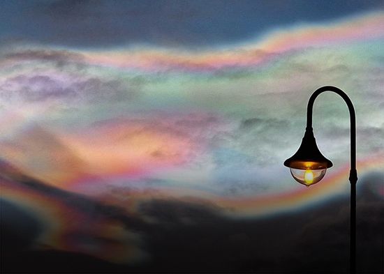 El efecto colorido se produce cuando los rayos solares atraviesan los cristales de las nubes y se refractan o dispersan, es decir, se produce un cambio en su dirección que los descompone en diferentes longitudes de onda o colores. La gama visible depende de la composición de los cristales.