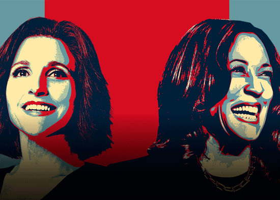 Harris es frecuentemente comparada con el personaje de Selina Meyer. Interpretada por Julia Louis-Dreyfus, Meyer es una vicepresidenta de EE.UU. que, tras la decisión del presidente de no buscar un segundo mandato, lanza su propia candidatura para hacerse con el puesto. Su figura es presentada como una cínica política estadounidense del 'establishment' que busca el poder a toda costa.