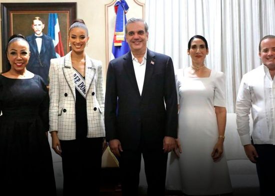 El Presidente Luis Abinader, acompañado de la primera dama de la República, Raquel Arbaje, recibió este jueves en su despacho una visita de cortesía de la Miss República Dominicana 2022, Andreína Martínez Founier, que participó en la edición 71 de Miss Universo celebrada en New Orleans, Estados Unidos.