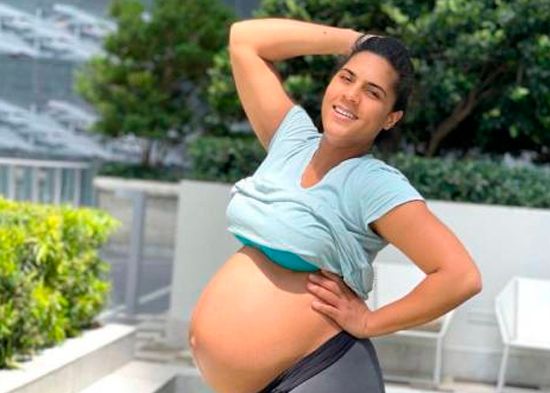 Este domingo compartió felizmente una imagen de la semana 38, vestida con ropa de ejercicio y luciendo una gran barriga con felicidad rebosante.