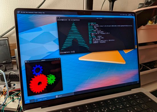 En noviembre, por ejemplo, mostró que el nuevo MacBook Pro de 14" era capaz de ejecutar KDE Plasma 5 desde su SSD NVMe, aunque sin soporte para GPU todo dependía de la CPU. Aun así, decía, el rendimiento era fluido para estar funcionando al 100% con CPU.